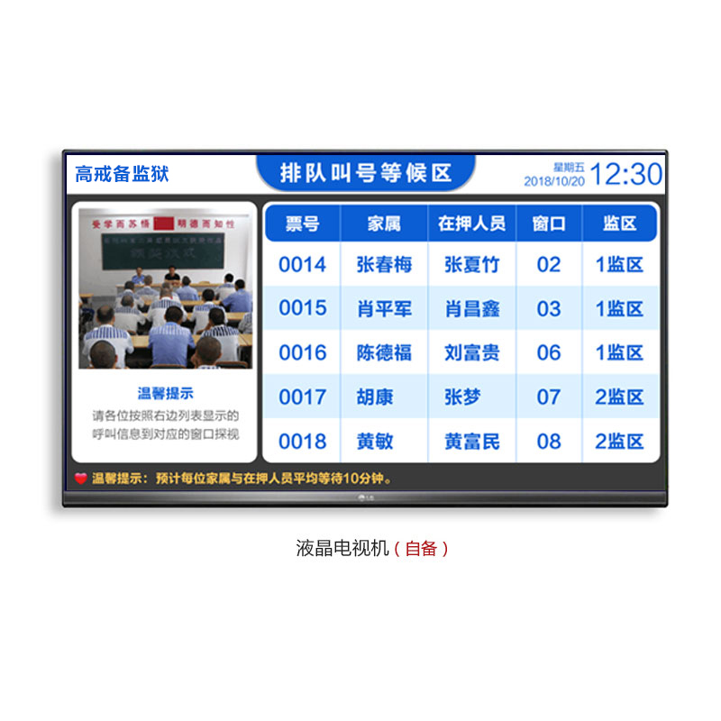 ? 控制盒通过HDMI方式连接液晶电视,安装在家属、在押人员会见区等场所。